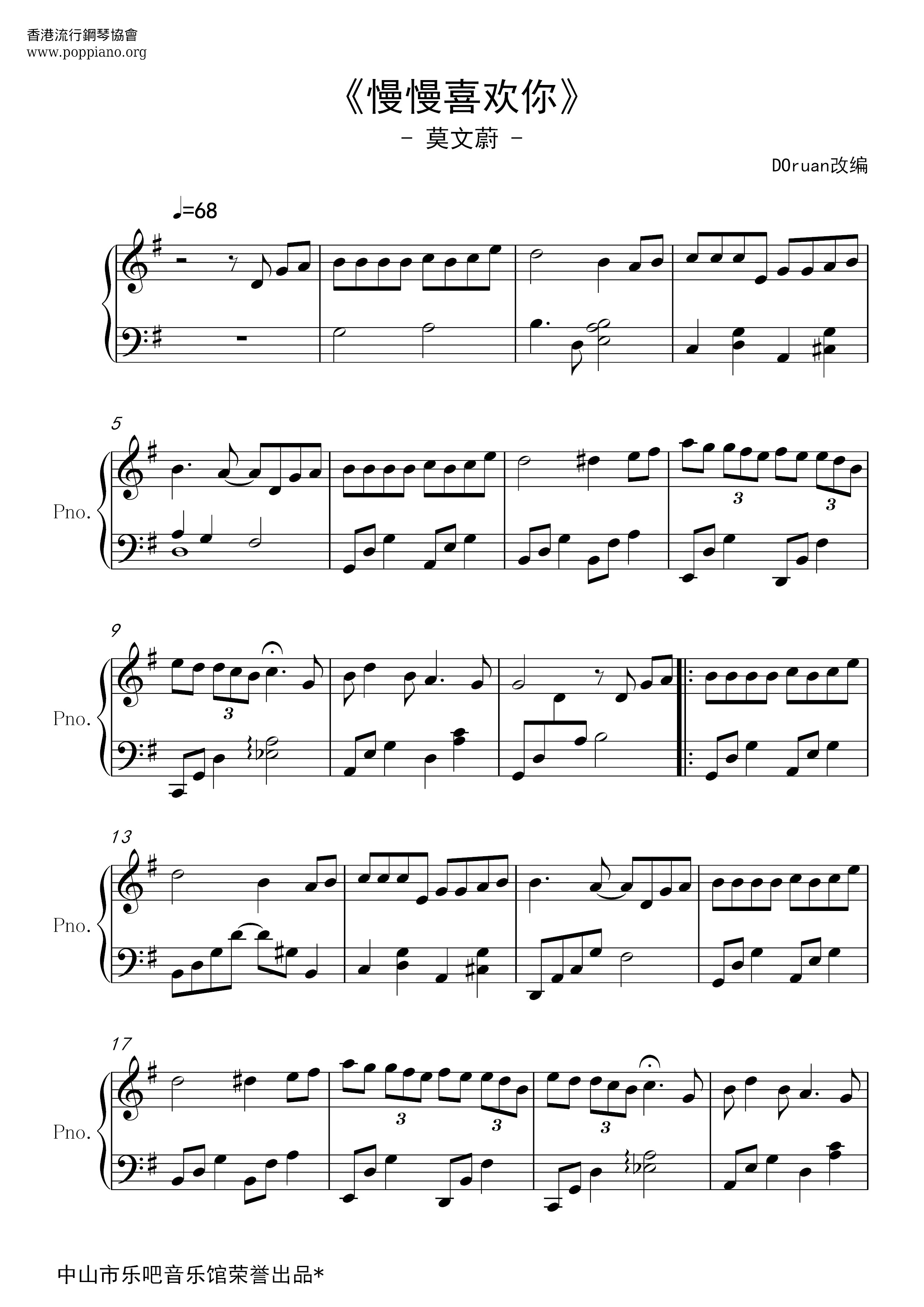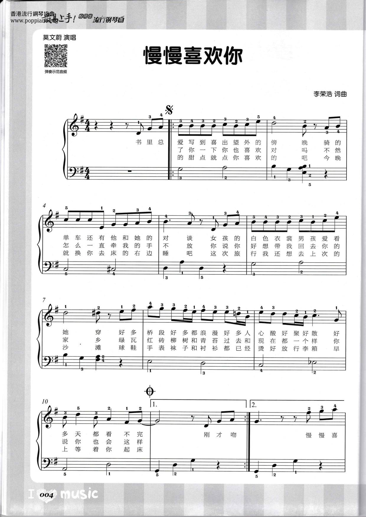 慢慢喜欢你 (简谱)