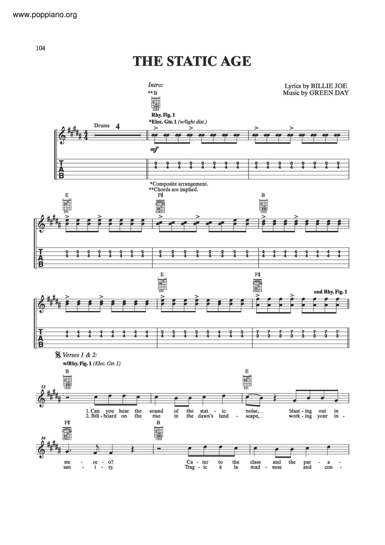 Green Day - The Static Age (琴谱)