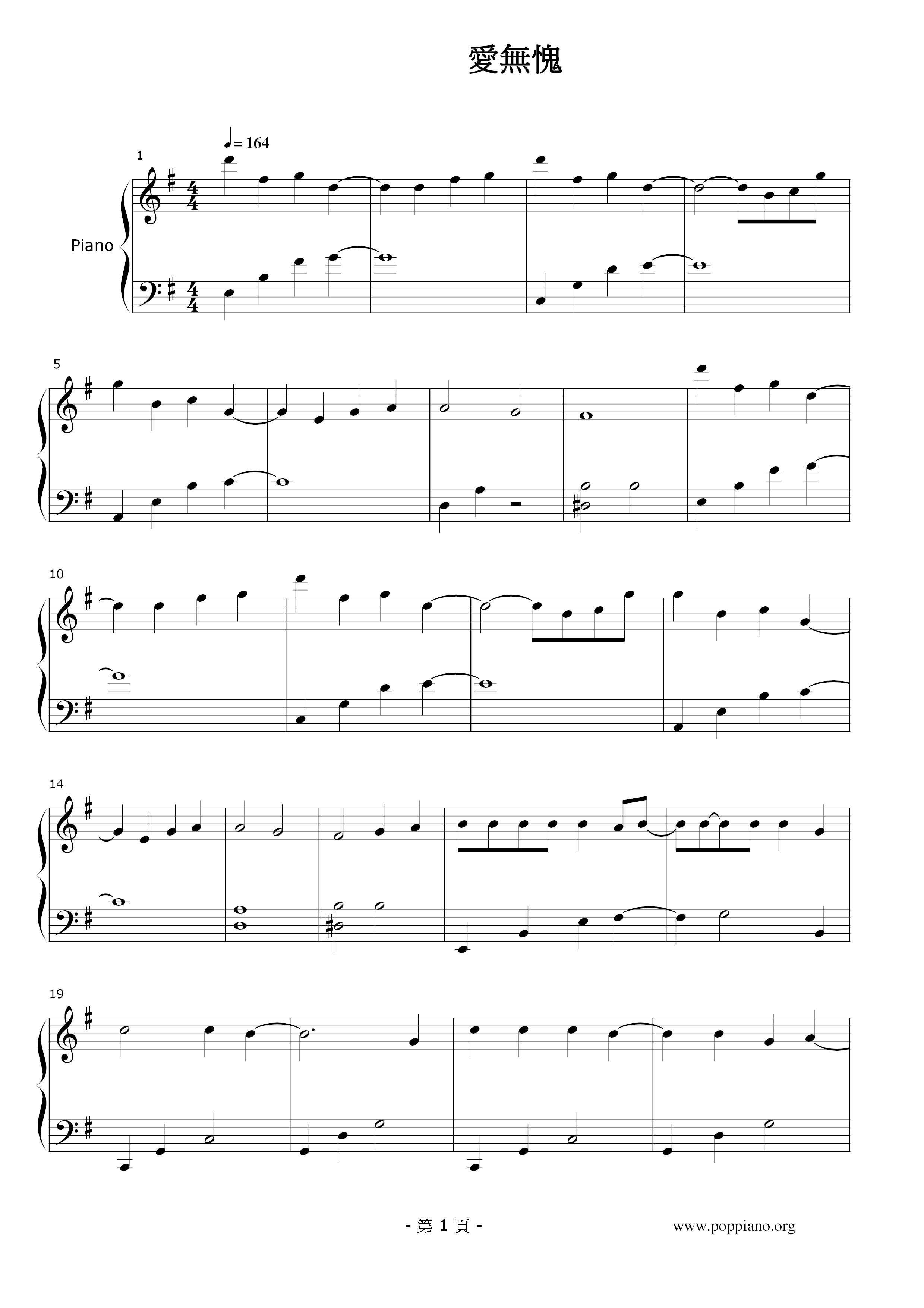 何韵诗 - 爱无愧 (琴谱)