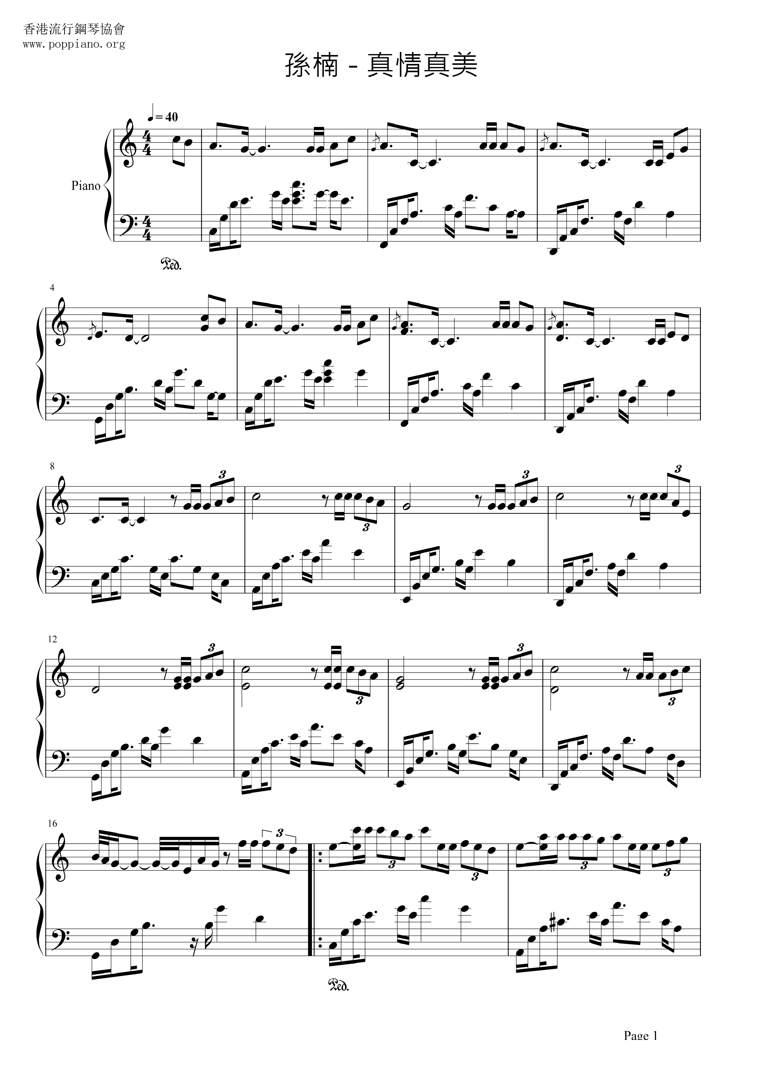 Sun Nan - True Love Is Really Beautiful (Sheet Music)