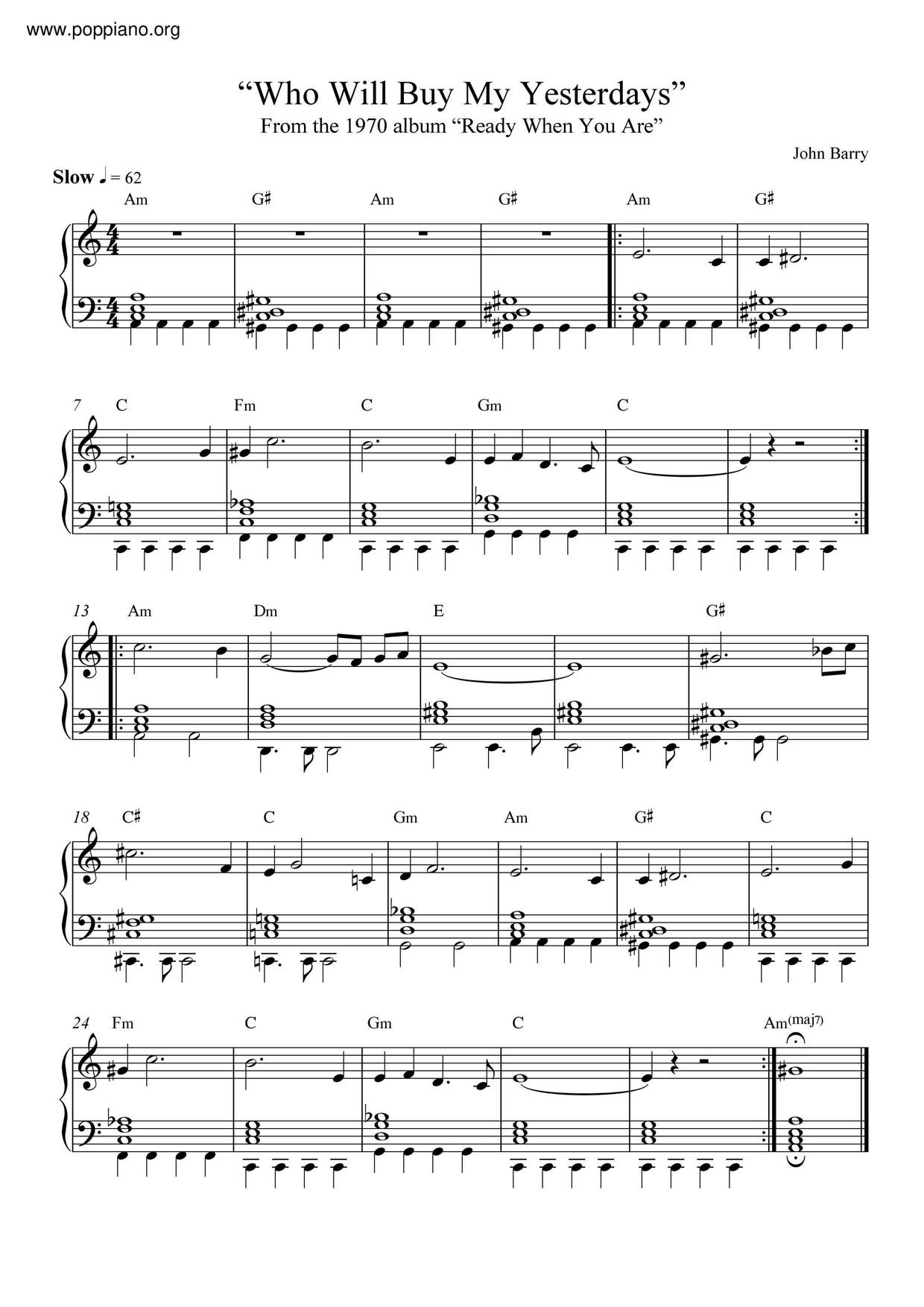John Barry - Who Will Buy My Yesterdays (Sheet Music)