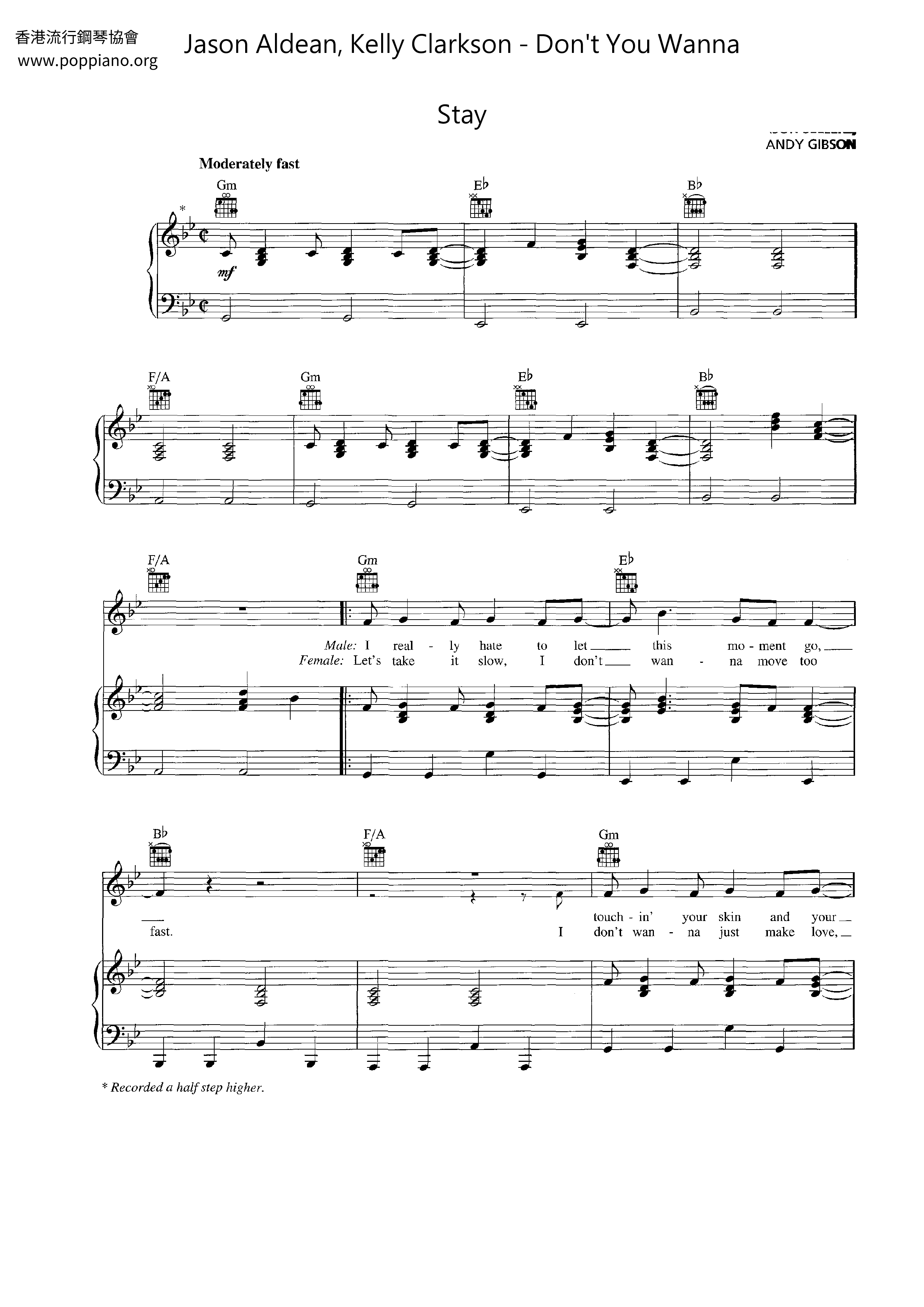 Jason Aldean, Kelly Clarkson - Don't You Wanna Stay (Sheet Music)