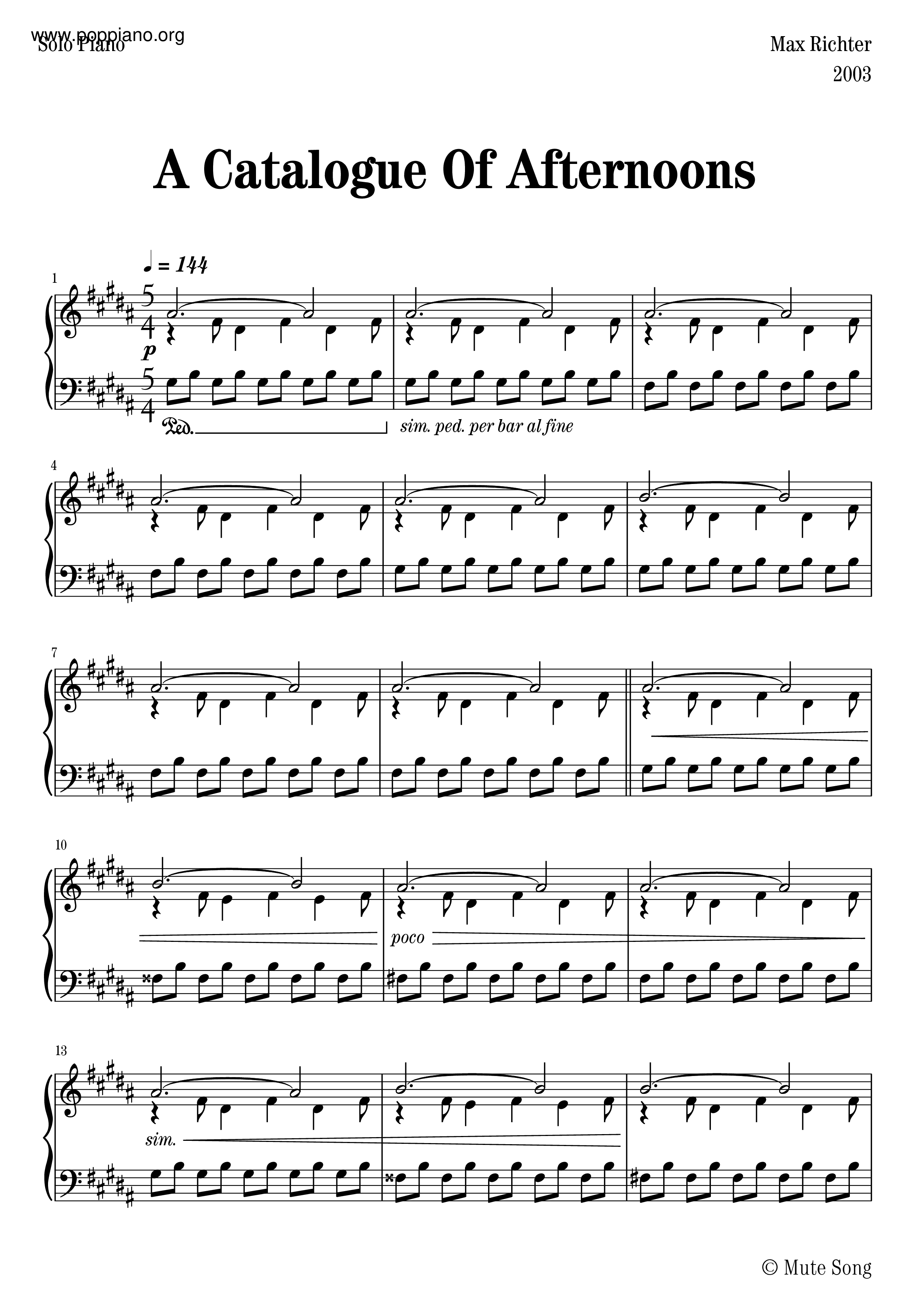 Max Richter - A Catalogue Of Afternoons (Sheet Music)