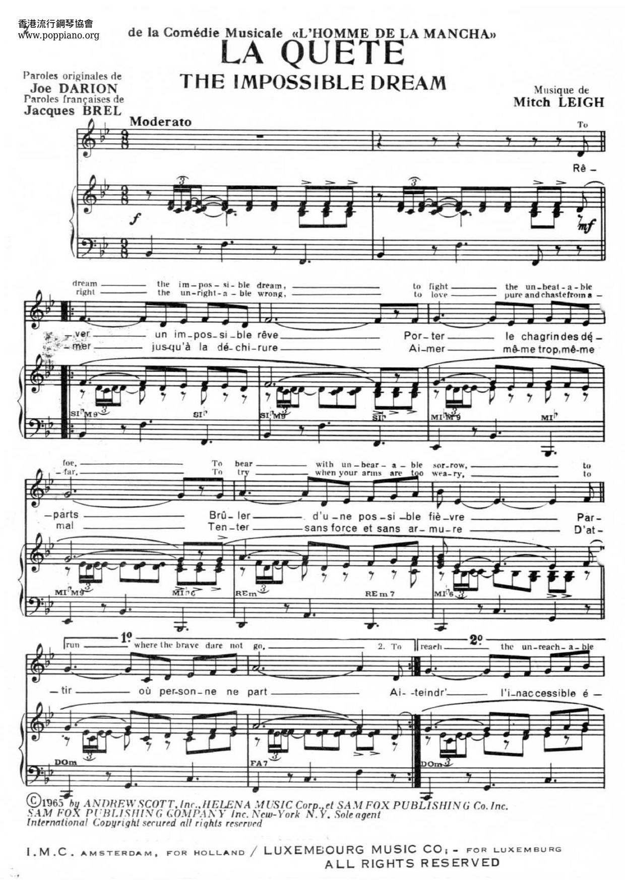 Jacques Brel - La Quete (Sheet Music)