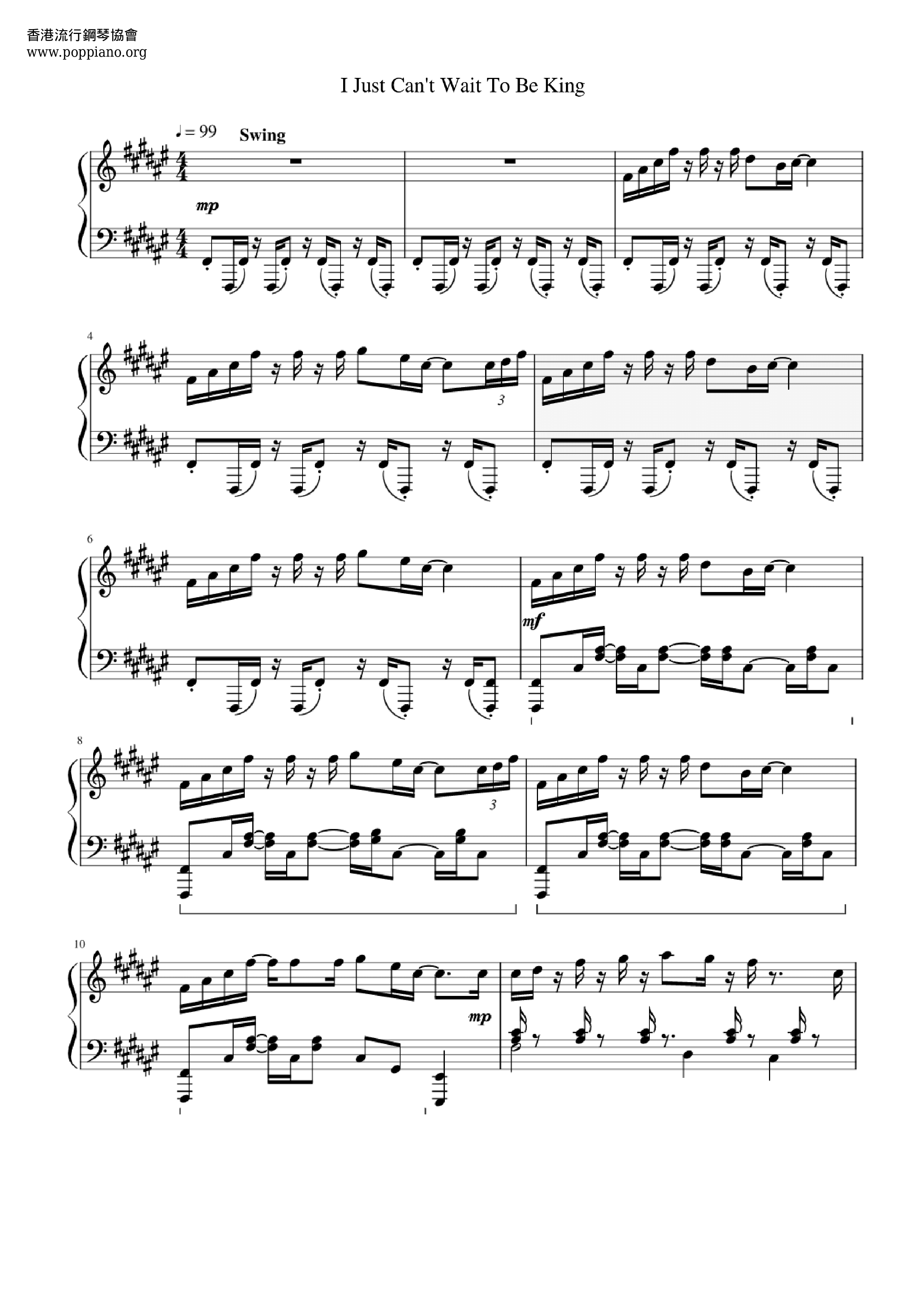 ライオン・キング - アイ・ジャスト・キャント・ウェイト・トゥ・ビー・キング (メロディ)