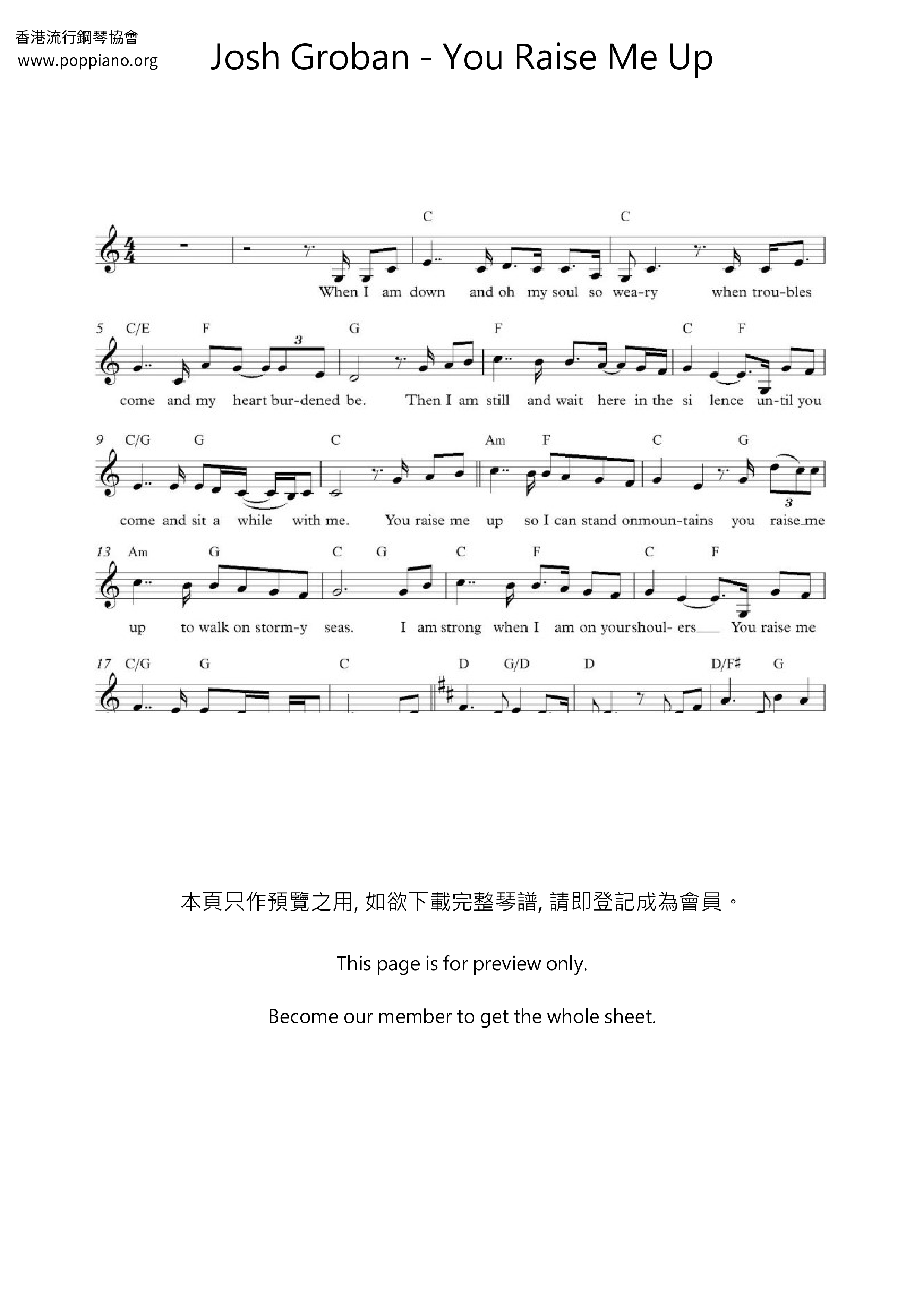 ユー・レイズ・ミー・アップ (メロディ)