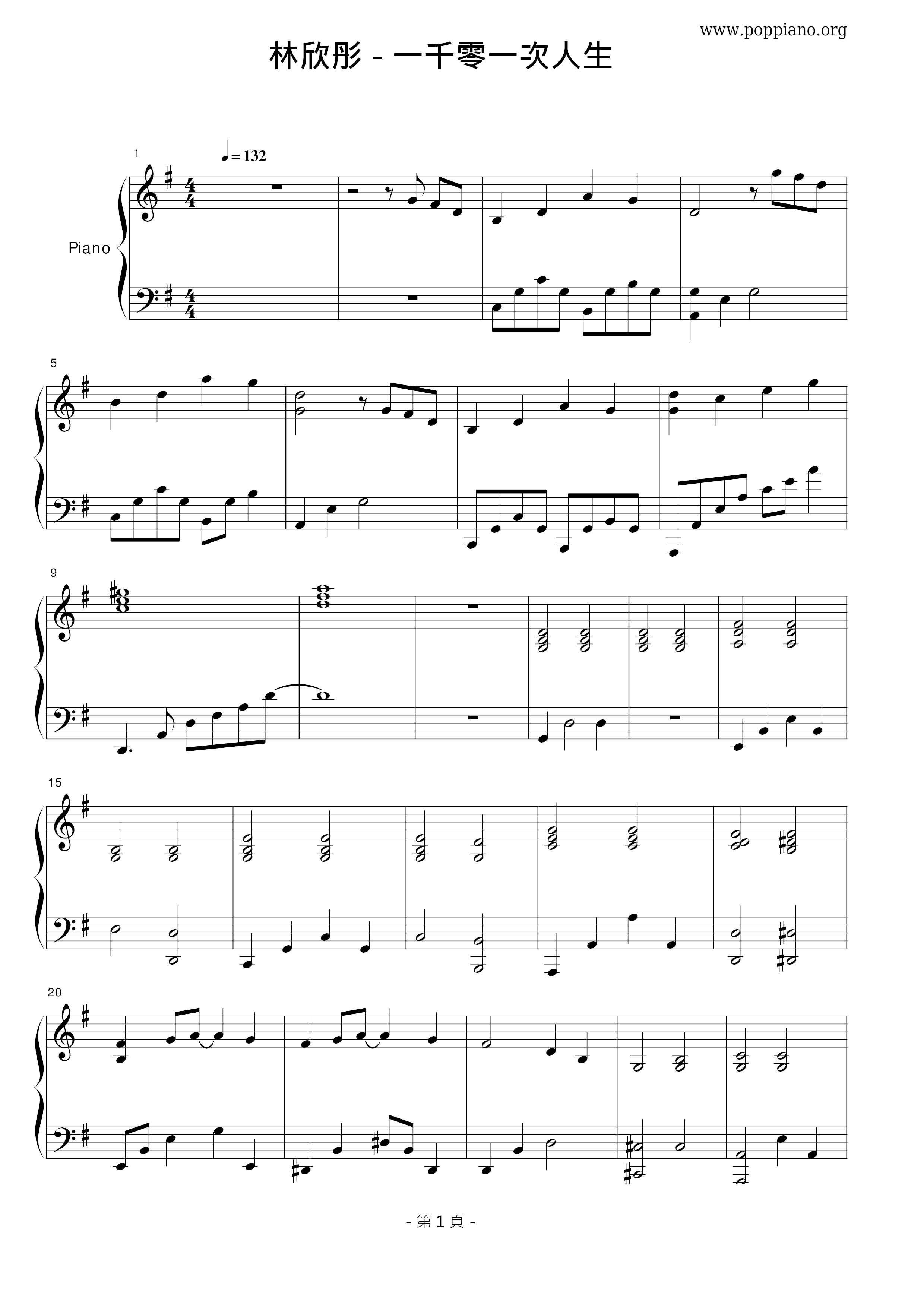 林欣彤 - 一千零一次人生 (ピアノ譜)