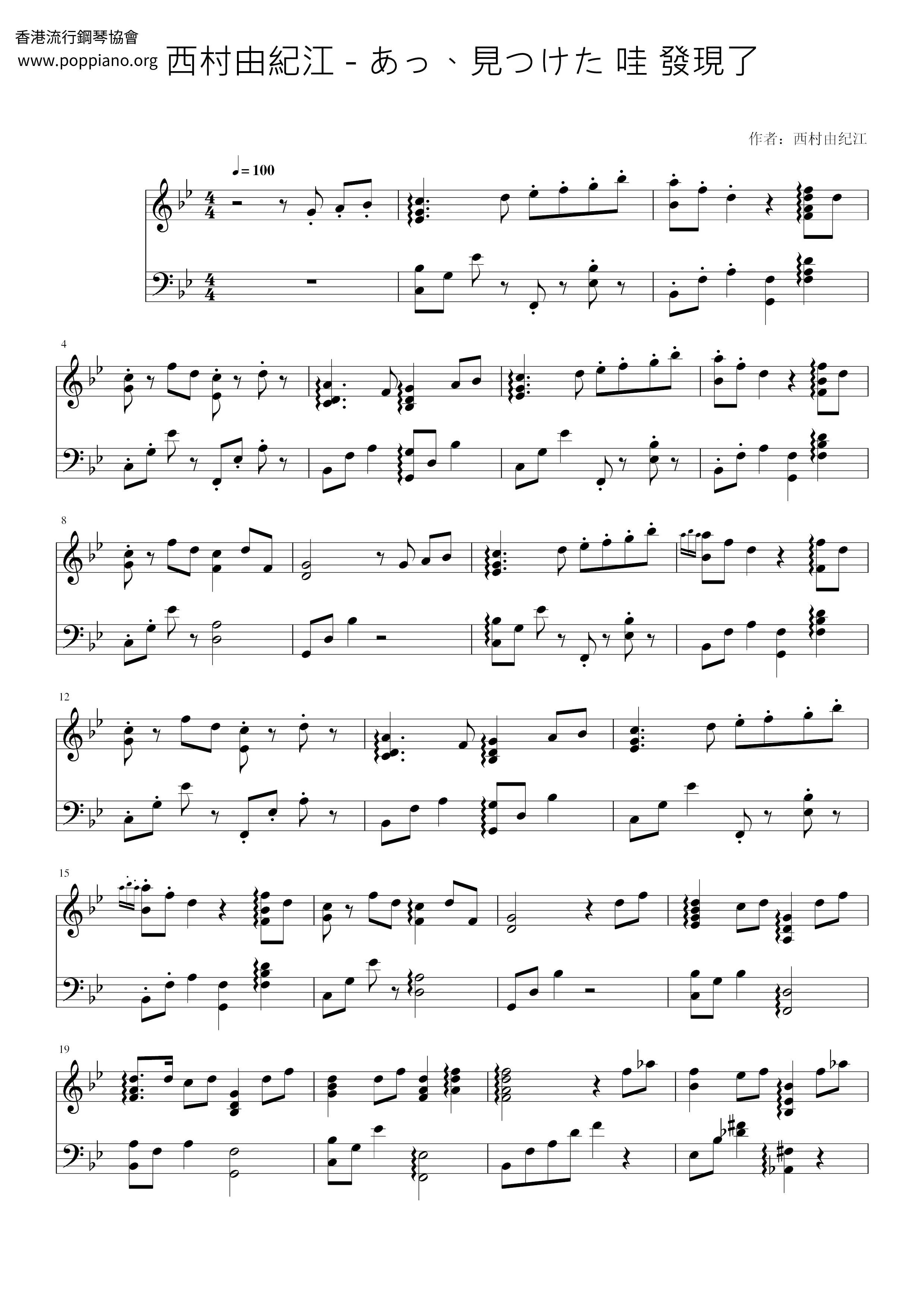 あっ、見つけた 哇 發現了 (西村由紀江) 琴譜