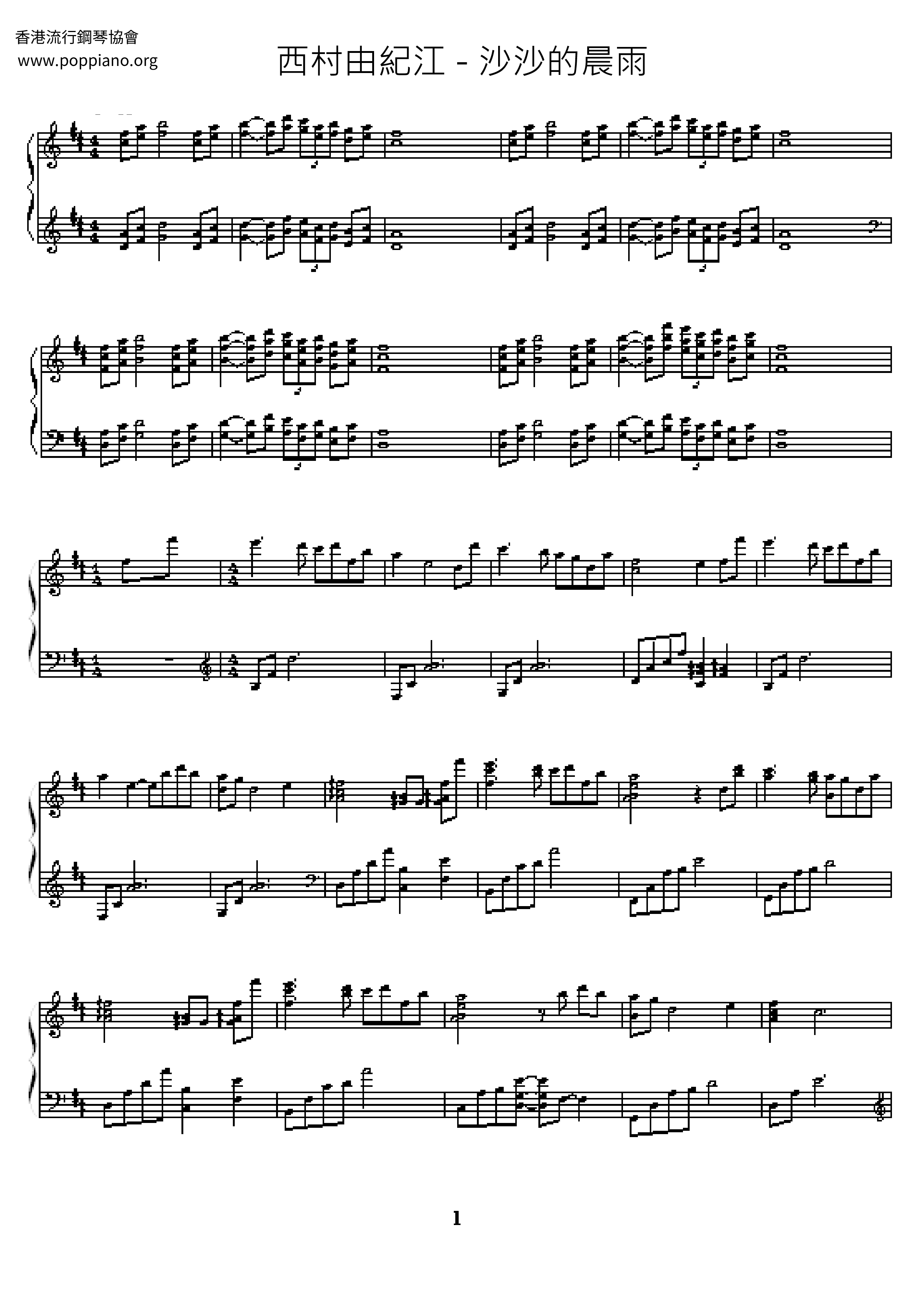 沙沙的晨雨 (西村由紀江) 琴譜
