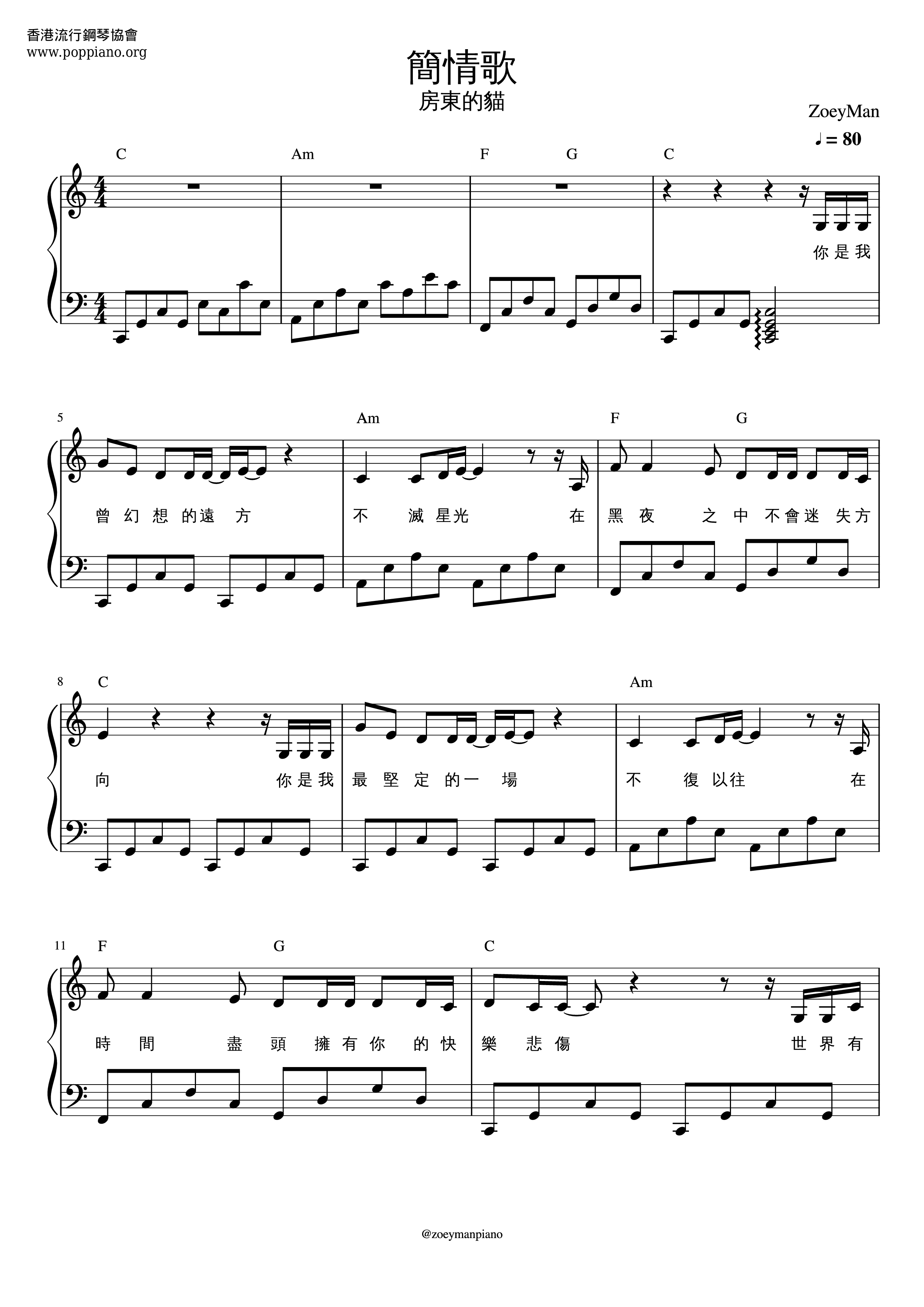 房東的貓 - 簡情歌 (琴譜)