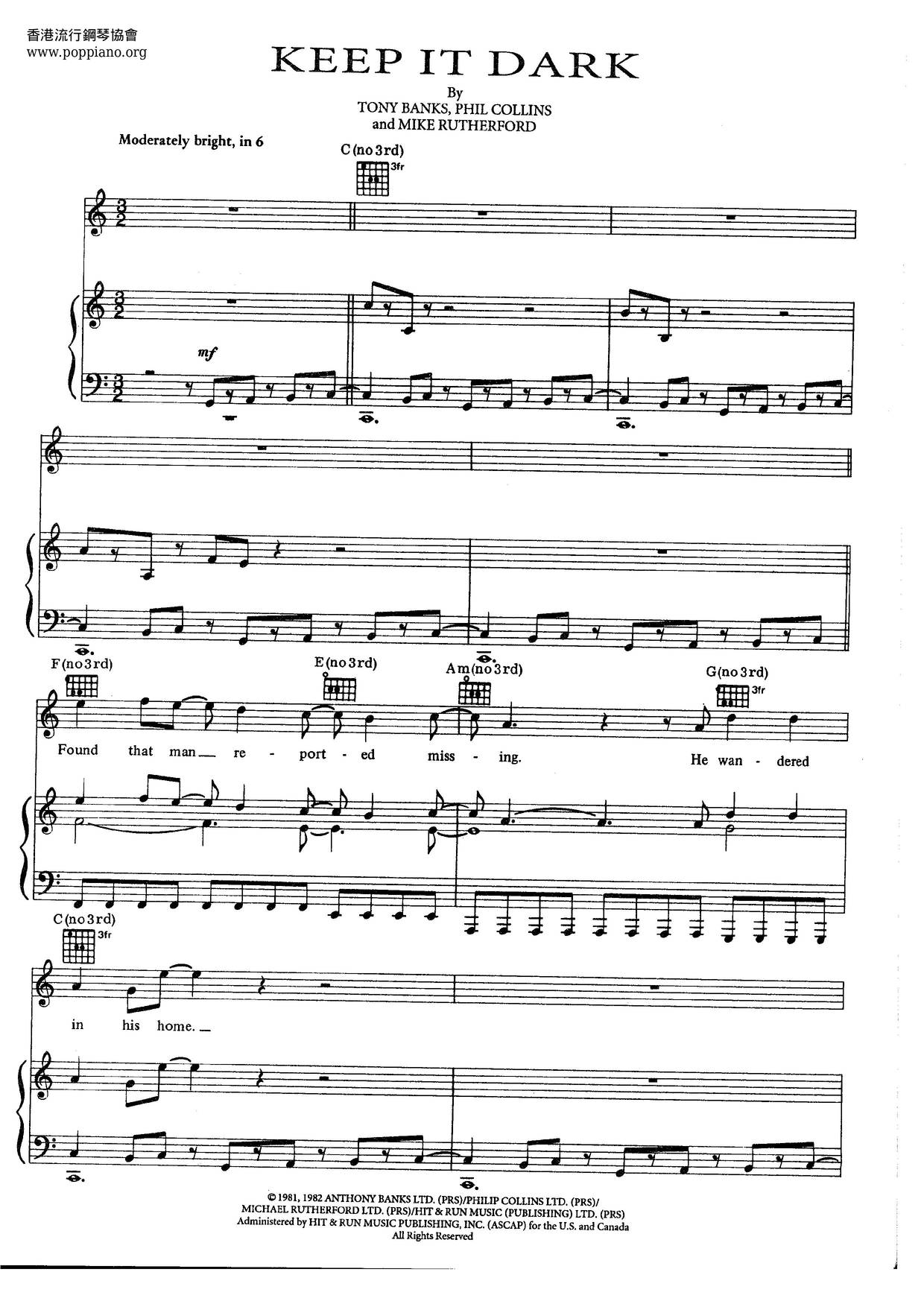 Keep It Dark琴譜▲ 圖片只作預覽, 如欲下載整份譜, 請按「免費成為會員」 ▲