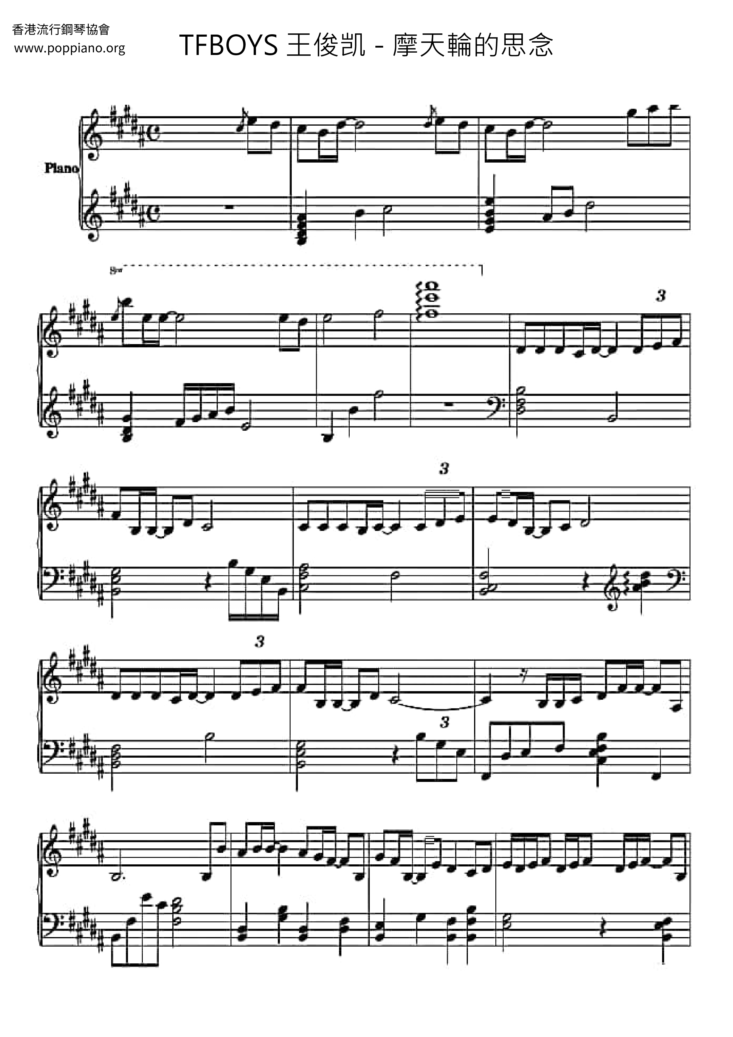 摩天輪的思念 (TFBOYS, 王俊凱) 琴譜