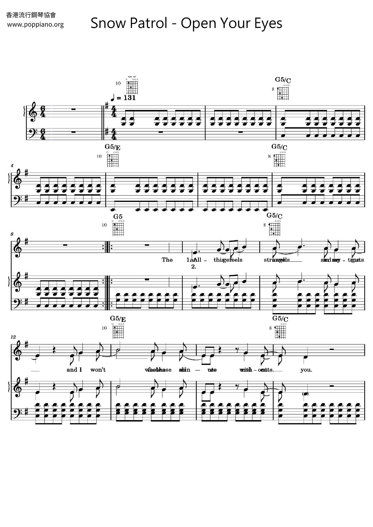 Open Your Eyes (Snow Patrol) 琴譜