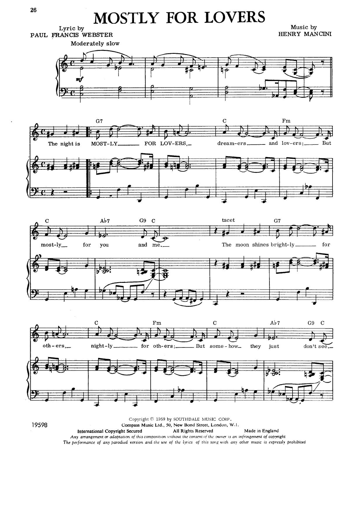 Mostly For Lovers琴譜▲ 圖片只作預覽, 如欲下載整份譜, 請按「免費成為會員」 ▲